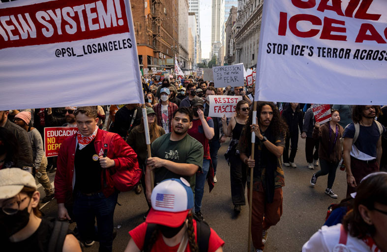 في فيلادلفيا، سار متظاهرون تحت المطر من مبنى البلدية إلى مكتب إدارة الهجرة والجمارك في المنطقة.
