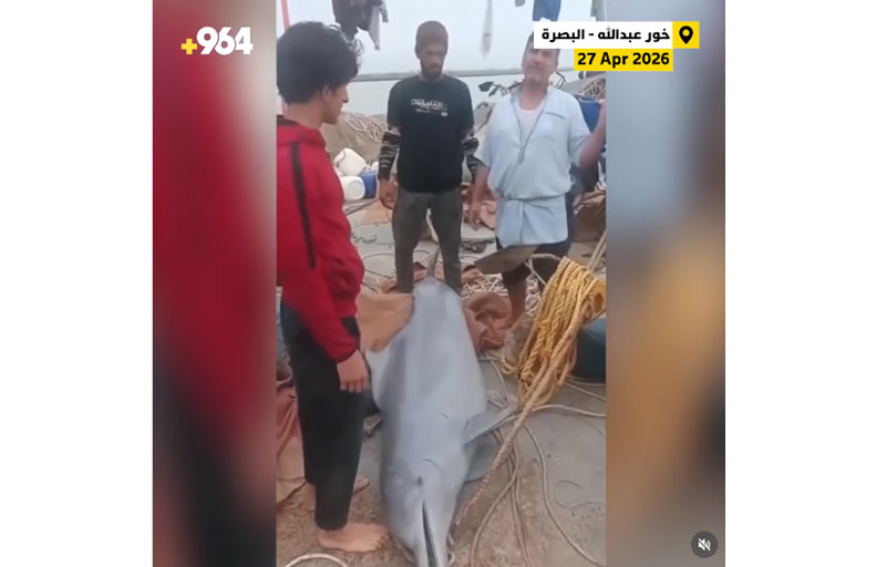 وأظهر مقطع فيديو تداولته وسائل إعلام عراقية أمس الأول الاثنين، عدداً من الصيادين وهم يحيطون بدولفين كبير الحجم، قالوا "بأنه علق بشباكهم أثناء مباشرتهم الصيد في مياه الخليج العربي قبالة سواحل البصرة".