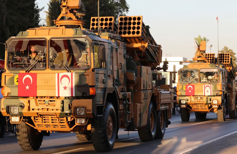 عام 1974، تدخلت تركيا عسكريا في الجزيرة التي تعتبرها ضمن نفوذها العثماني القديم، وذلك عقب انقلاب في الجزيرة ومحاولة ضمها إلى اليونان، وفرضت سيطرتها على 37 بالمئة منها.