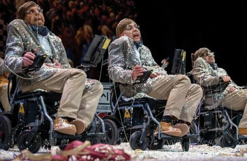 نظم اثنا عشر ممثلاً عرضاً فنياً لافتاً فوق خشبة مسرح "غران تياترو فايا" بإسبانيا، حيث ظهروا متنكرين بهيئة العالم الراحل ستيفن هوكينغ على كراسي متحركة مزودة بمحركات. وجاء هذا الأداء ضمن منافسات كرنفال قادس لعام 2026، بهدف منح أصحاب الهمم صوتاً ورؤية في المحافل العامة، محولين المنصة الفنية إلى وسيلة للتضامن الإنساني.