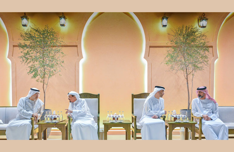حاكم عجمان وولي عهده يتقبلان التهاني بشهر رمضان من العويس والزيودي ووجهاء القبائل