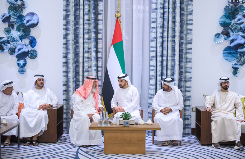 حمدان بن زايد يستقبل المهنئين بشهر رمضان المبارك في قصر السِيف