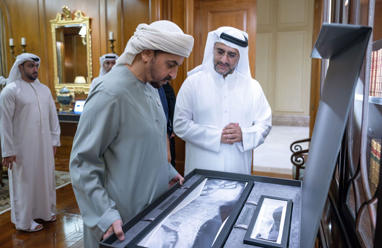 حمدان بن زايد يستقبل وفداً من الأرشيف والمكتبة الوطنية ويطلع على صور جوية تاريخية للدولة