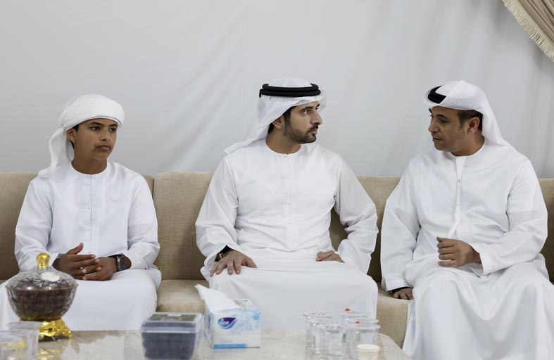 حمدان بن محمد يقدم واجب العزاء في مبارك محمد المطيوعي المنصوري