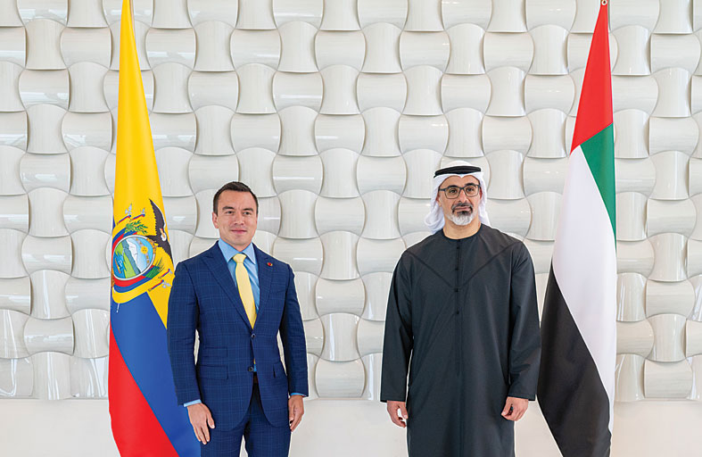 وأكد سمو ولي عهد أبوظبي حرص دولة الإمارات على تعزيز تعاونها مع دول أمريكا اللاتينية، مشيراً إلى أهمية توسيع آفاق الشراكة مع جمهورية الإكوادور في ضوء ما يجمع البلدين من قيم مشتركة ورؤى تنموية متقاربة، وما تحظى به العلاقات الثنائية من دعم مستمر من قيادتي البلدين.