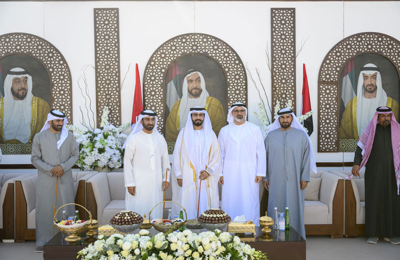 حضر سمو الشيخ خالد بن محمد بن زايد آل نهيان ولي عهد أبوظبي حفل استقبال أقامه جمعة مانع الغويص السويدي بمناسبة زفاف نجله حمد.. على كريمة سلطان راشد خليفة الشامسي.