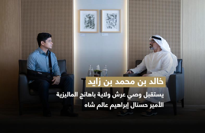 استقبل سمو الشيخ خالد بن محمد بن زايد آل نهيان، عضو المجلس التنفيذي لإمارة أبوظبي رئيس مكتب أبوظبي التنفيذي، صاحب السمو الأمير حسنال إبراهيم عالم شاه، وصي عرش ولاية باهانج الماليزية، نجل جلالة السلطان عبد الله رعاية الدين المصطفى بالله شاه ملك ماليزيا.