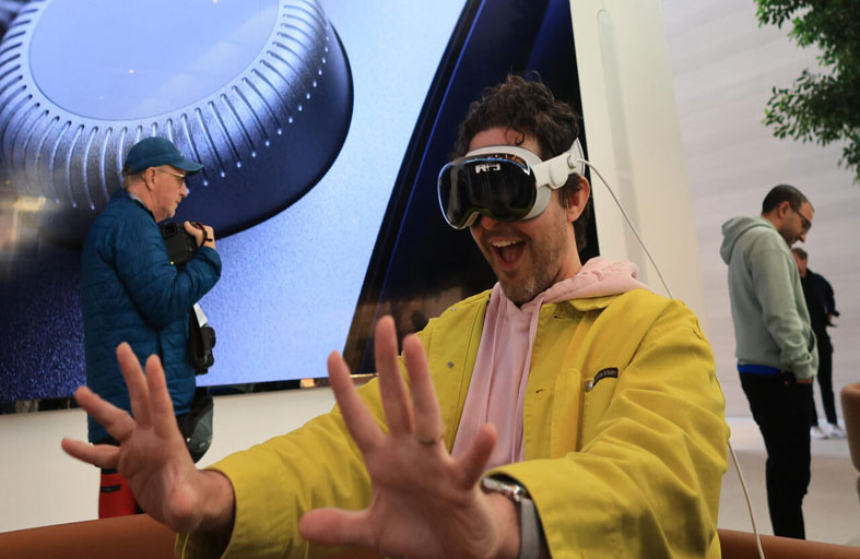 اصطف محبو التكنولوجيا والمولعون بمنتجات "آبل"، الجمعة في طوابير أمام متاجر العلامة التجارية العملاقة في الولايات المتحدة لاختبار "فيجن برو"، وهي خوذة تمزج بين الواقعين المعزز والافتراضي وتباع بسعر يبدأ بـ3499 دولاراً.