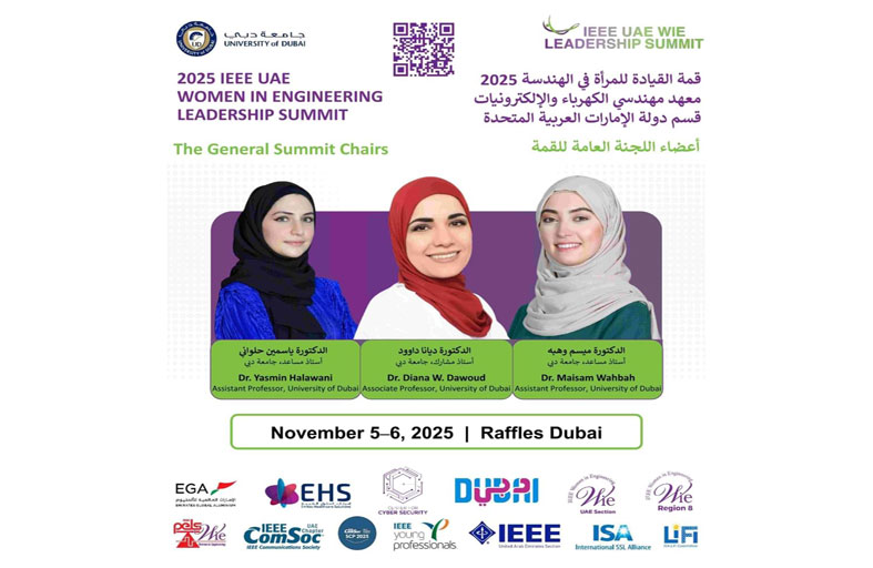 تستضيف دبي يومي 5 إلى 6 نوفمبر الحالي قمة القيادة للمرأة في الهندسة 2025 ‏التابعة لمعهد مهندسي الكهرباء والإلكترونيات “‏IEEE‏” – فرع دولة الإمارات ‏بمشاركة أكثر من 200 من الأعضاء والقيادات النسائية يمثلن أكثر من 10 دول.‏