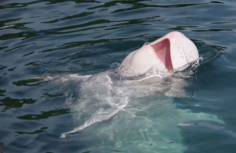 ويتميز هذا الدولفين بضخامته، حيث يصل طوله إلى 3.8 متر، ويزن ما بين 50 و300 كيلو غرام، ما يجعله مثيرًا للدهشة.