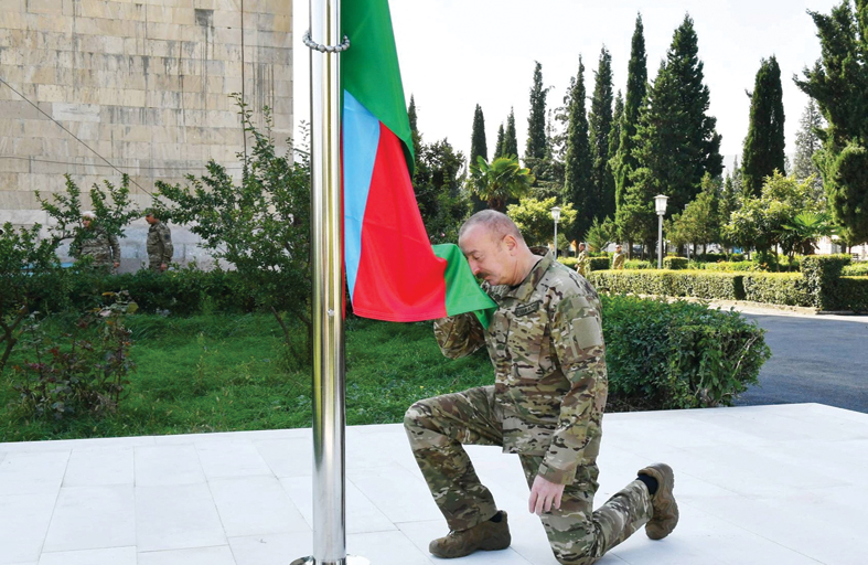 رئيس أذربيجان يرفع علم بلاده في قرة باغ