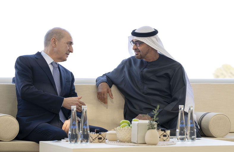 ورحب صاحب السمو رئيس الدولة ــ خلال اللقاء الذي جرى في مجلس قصر البحر في أبوظبي ـــ برئيس مجلس الأمة التركي الذي نقل إلى سموه تحيات فخامة رجب طيب أردوغان رئيس الجمهورية التركية الصديقة وتمنياته لدولة الإمارات دوام التقدم والازدهار..فيما حمله سموه أطيب تحياته إلى الرئيس التركي وتمنياته لبلده وشعبه الصديق مزيداً من التطور والنماء.
