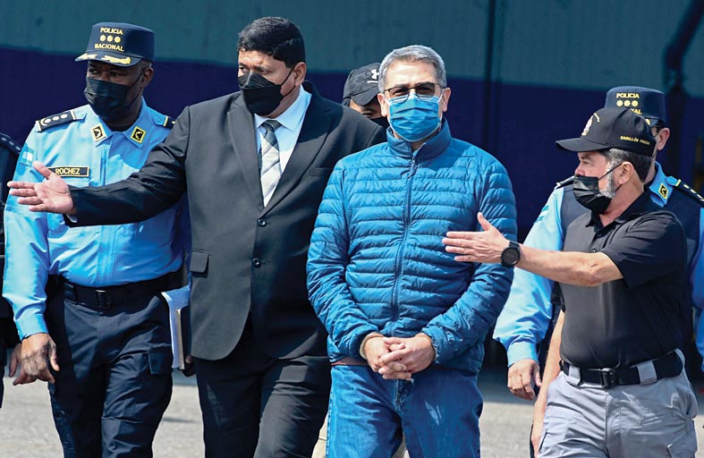 يمثل الرئيس السابق لهندوراس خوان أورلاندو هيرنانديز أمام قاض في نيويورك بعدما تم تسليمه إلى الولايات المتحدة لمحاكمته بتهمة المشاركة في عمليات تهريب واسعة النطاق لـ500 طن من الكوكايين بين 2004 و2022، قد يعاقب عليها بالسجن مدى الحياة.