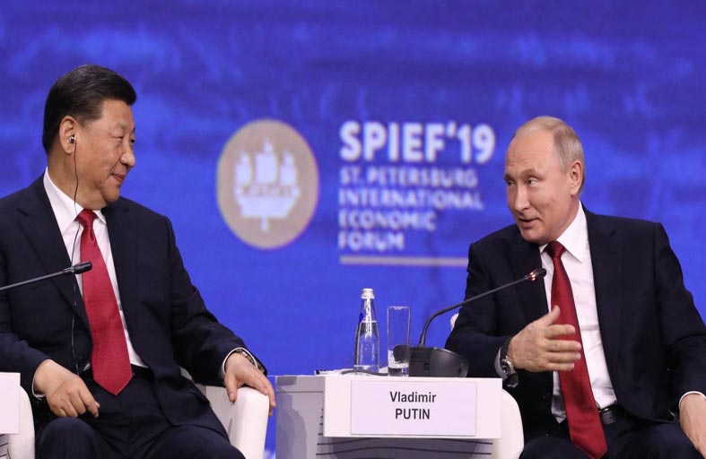في غضون ذلك، يطور شقيقان عدوان تعاونًا شاملاً دون التوقيع على تحالف عسكري رسمي. أسسا بنكًا للتنمية، وتعاونا في ترميم طريق الحرير البحري والبري. ومن 1.2 تريليون دولار عام 2000، ارتفع الناتج المحلي الإجمالي للصين إلى ما يقرب من 18 تريليون دولار عام 2021. وتحتل روسيا، مدعومة بصادرات السلع الأساسية، أدنى مرتبة من بين العشرة الأوائل من الناتج المحلي الإجمالي في العالم. العقوبات، تخدم المصالح الروسية بشكل مؤلم من خلال إجبارها على التنويع التكنولوجي الذي أخرته موسكو لفترة طويلة. دخل خط أنابيب الغاز العابر لسيبيريا “سيبيريا فورس”، الذي بدأ العمل فيه عام 2014، حيز الخدمة نهاية عام 2019. وفي نفس الوقت، دخلت روسيا الأسواق العسكرية لجنوب شرق آسيا، وتحاول جذب مستثمرين إلى المنطقة الاقتصادية في فلاديفوستوك. هذا الاندفاع نحو المحيط الهادئ لدولة يوجد سكانها بالكامل في الغرب، هو النظير لتطويق الحلف الأطلسي لروسيا.