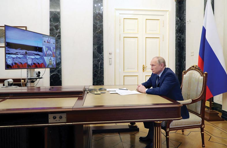 وأظهر التلفزيون لقطات لبوتين وهو يستمع لإفادات من الجيش بشأن إطلاق الصاروخ من بليسيتسك في شمال غرب البلاد ليضرب أهدافا في شبه جزيرة كامشاتكا في أقصى الشرق.