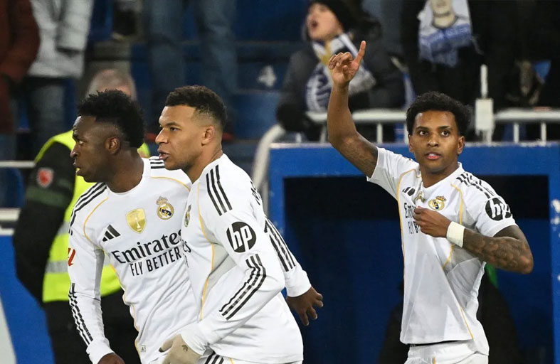 ويدين فريق المدرب شابي ألونسو للفرنسي العائد من الإصابة كيليان مبابي والبرازيلي رودريغو اللذين أحرزا هدفي فريقهما في الدقيقتين 24 و76، فيما حمل هدف ألافيس توقيع كارلوس فيسينتي (69).