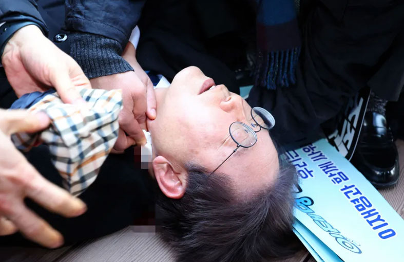 تعرّض زعيم المعارضة الكوريّة الجنوبيّة لي جاي ميونغ للطعن في رقبته أمس الثلاثاء أثناء حديثه إلى صحفيّين في مدينة بوسان الساحليّة بجنوب شرق البلاد. وكان لي يسير محاطا بعدد من الصحفيين بعد زيارته موقع مطار جديد في المدينة، حين قام رجل يقف أمامه بطعنه بالسكين في رقبته، بحسب لقطات عرضها التلفزيون الكوري الجنوبي.