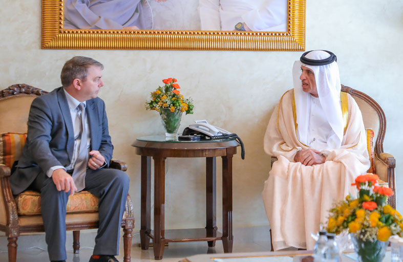 سعود بن صقر يستقبل المبعوث التجاري للمملكة المتحدة وسفيرها لدى الدولة