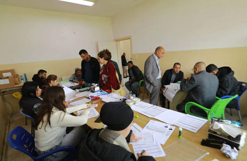 على طاولات اصطف أمامها طابور طويل، تناثرت استمارات التسجيل المختومة بشعار الدولة السورية، إلى جانب صور شخصية ووثائق قديمة، بينما انهمك موظفون حكوميون بتسجيل البيانات، قبل أن تظهر على إحدى الشاشات عبارة «تمت بنجاح».