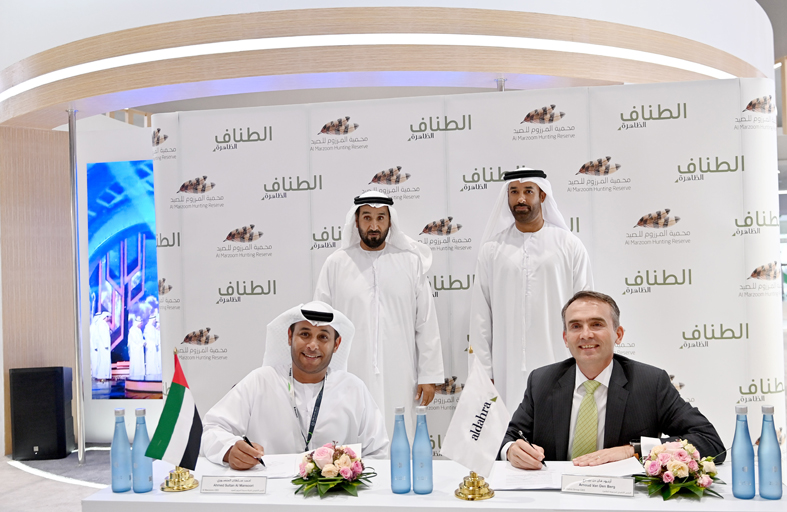 حضر توقيع الاتفاقية على هامش فعاليات معرض أبوظبي الدولي للصيد والفروسية ،معالي اللواء ركن طيار فارس خلف المزروعي قائد عام شرطة أبوظبي رئيس لجنة إدارة المهرجانات والبرامج الثقافية والتراثية ، فيما وقعهاأرنود فان دن بيرغ، الرئيس التنفيذي لمجموعة الظاهرة وأحمد بن هياي المنصوري، مدير محمية المرزوم.
