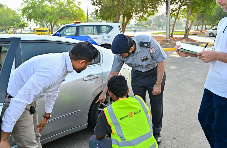 شرطة أبوظبي تعزز وعي السائقين للتأكد من سلامة إطارات مركباتهم ميدانياً