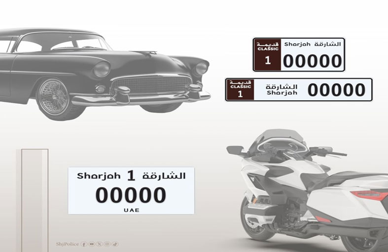 شرطة الشارقة تطرح فئة جديدة من لوحات المركبات الكلاسيكية والدراجات