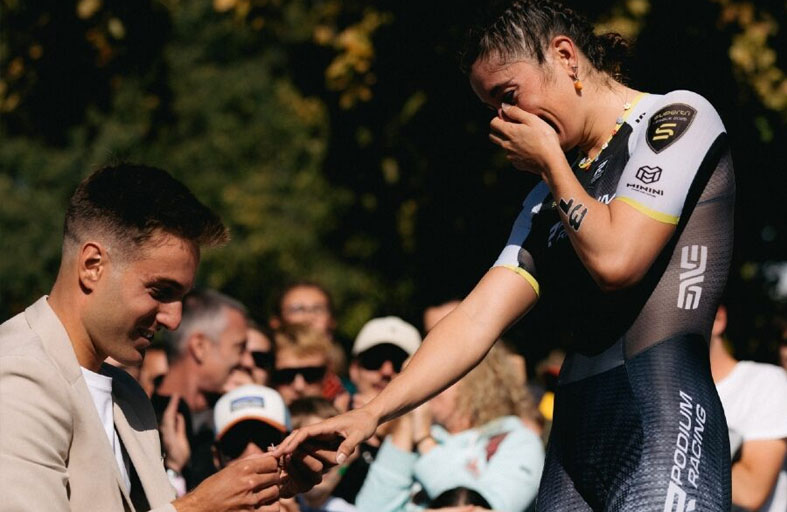 وكانت لاعبة الثلاثي المولودة في فرنسا والتي مثلت لوكسمبورج في أولمبياد باريس، تحتفل بفوزها المذهل بعدما احتلت المركز الثاني في النسختين السابقتين، عندما عرض عليها زميلها ناتان ليسمان الزواج على منصة التتويج بعد السباق.