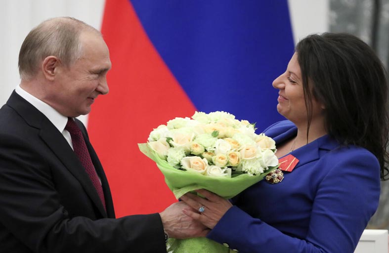 صارت رئيسة تحرير شبكة آر تي RT التلفزيونية مارغريتا سيمونيان، أحد وجوه الحرب الدعائية التي تخوضها موسكو في مجال الإعلام، بالتوازي مع الهجوم في أوكرانيا.