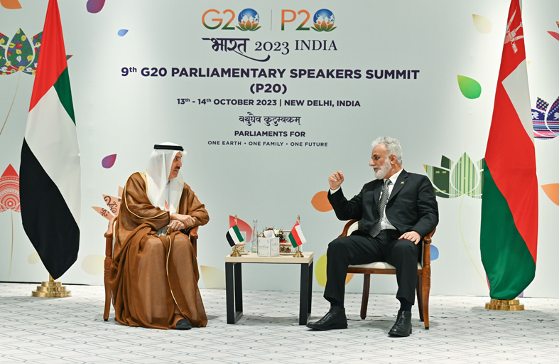 صقر غباش يلتقي رئيس مجلس الدولة بسلطنة عمان على هامش قمة رؤساء برلمانات مجموعة العشرين