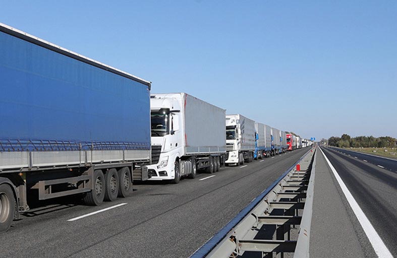 طابور شاحنات على الحدود بين بولندا وبيلاروس