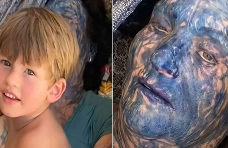 طفل يحول وجه جدته لنسخة من فيلم «أفاتار »