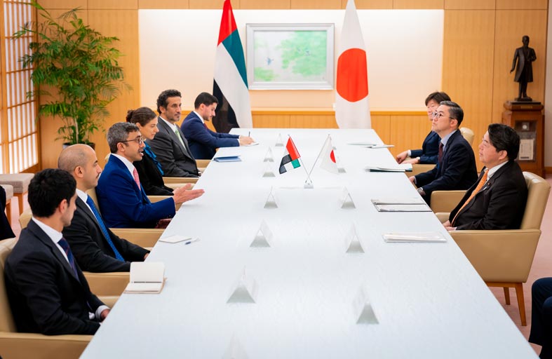 وأكد سمو الشيخ عبدالله بن زايد آل نهيان ومعالي يوشيماسا هاياشى على عمق علاقات التعاون والشراكة بين البلدين.