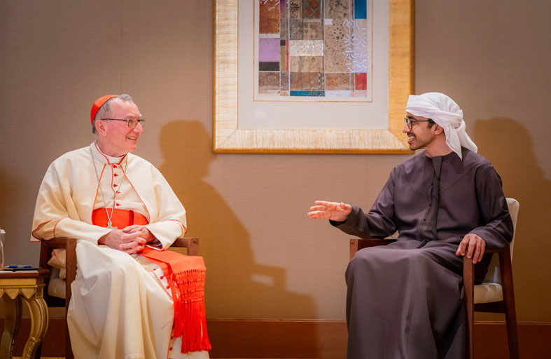 من جانبه أشاد الكاردينال بيترو بارولين بالعلاقات المتميزة بين البلدين وبجهود دولة الإمارات لنشر قيم السلام والتسامح والتعايش بين الشعوب.