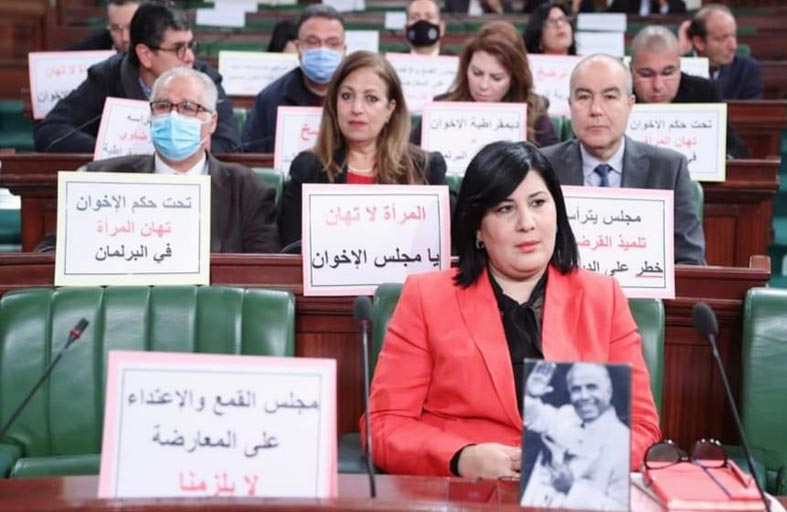 وقال البيان الموقّع من رئيسة الحزب عبير موسي ان رئيس المجلس يصر على تمرير الاتفاقية “إرضاء للمحاور التي يدين لها بالولاء باستعمال الأساليب الملتوية وتدليس المحاضر الرسمية وفي خرق جلي للنظام الداخلي وقرارات الجلسة العامة».