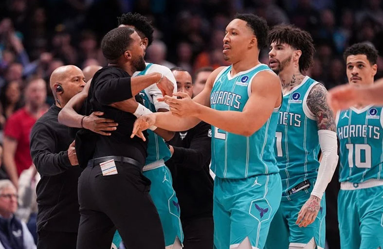 ألقى الإشكال الجماعي الذي وقع في مباراة ديترويت بيستونز ومضيفه شارلوت هورنتس وأدّى إلى طرد أربعة لاعبين بظلاله على المواجهة التي انتهت بفوز الأول 110-104 الاثنين ضمن دوري كرة السلة الأمريكي للمحترفين "أن بي ايه".