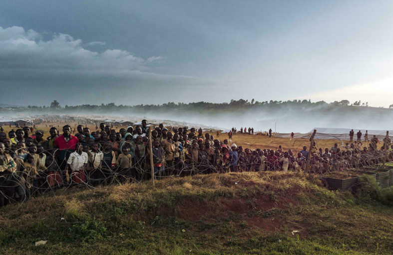 على سفح هذا التل على ارتفاع ألفي متر، أقيمت أكواخ من الأغصان وقماش الخيام على نحو فوضوي على مساحة تزيد عن عشرين هكتارا حول قاعدة الأمم المتحدة. وقالت أودري ريفيير منسقة المنظمة غير الحكومية “اكسيون كونتر لا فان” (تحرك ضد الجوع) في إيتوري بعد وصولها إلى رو على متن مروحية مثل العدد القليل من العاملين في المجال الإنساني الموجودينفي المكان، إن “المنطقة مغلقة تماما». وأضافت أن “هناك أقل من ثلاثة أمتار مربعة للشخص الواحد ... والناس هنا ينقصهم كل شيء: المياه والطعام وأماكن لقضاء حاجتهم».