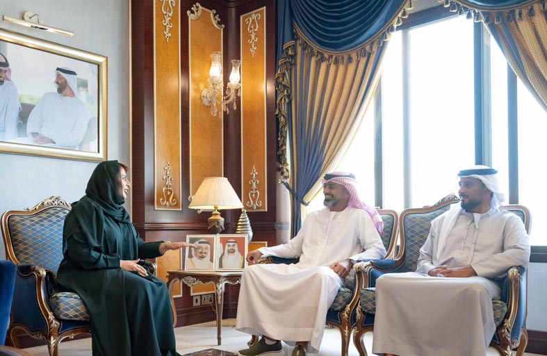 استقبل سمو الشيخ عمار بن حميد النعيمي ولي عهد عجمان رئيس المجلس التنفيذي، بمكتبه في الديوان الأميري، أمس، سعادة مريم خليفة الكعبي، سفيرة دولة الإمارات العربية المتحدة لدى جمهورية مصر العربية بحضور الشيخ عبدالعزيز بن حميد النعيمي رئيس دائرة التنمية السياحية في عجمان.