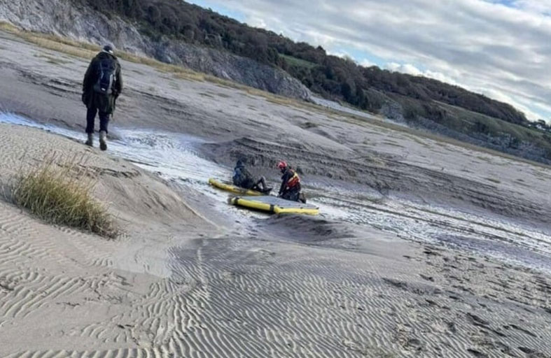 شهدت منطقة سيلفرديل بخليج موركامب في مقاطعة لانكشر البريطانية عملية إنقاذ طارئة بعد العثور على رجل عالق في الرمال المتحركة، لم يظهر من جسده سوى رأسه وصدره وذراع واحدة، بينما كانت مياه المدّ تتدفق بسرعة نحو موقعه.