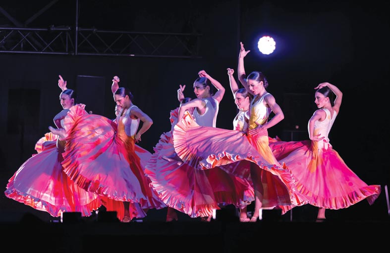 وقدم الراقصون بأزيائهم الأنيقة ومظهرهم اللافت لوحة فنية وهم يتحركون بخفة على المسرح، بينما ينفذون أكثر الحركات تعقيدًا واندفاعًا للرقصات الإسبانية المختلفة.