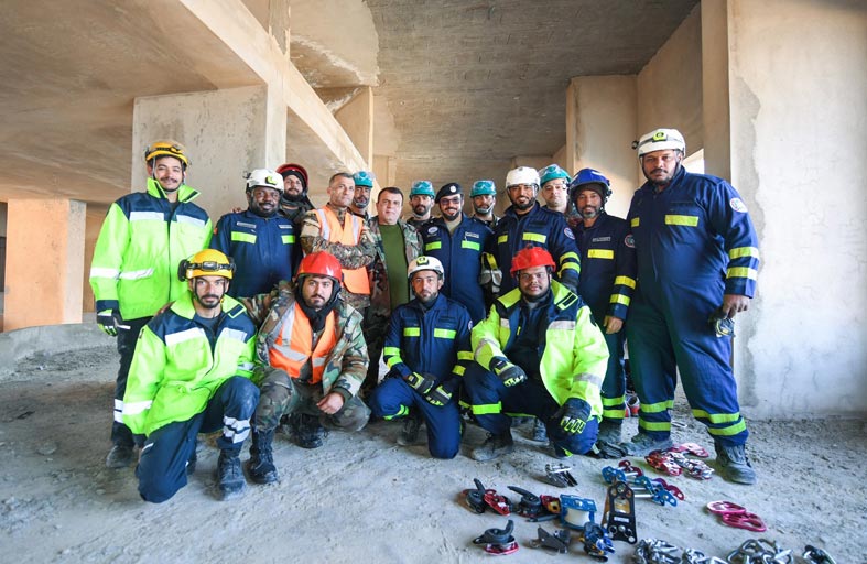 يواصل فريق الإمارات للبحث والإنقاذ في مقرة في مدينة جبلة بمحافظة اللاذقية السورية التدريبات العملية لتأهيل وتدريب عناصر من رجال الدفاع المدني السوري في التعامل مع الحالات الطارئة بحرفية .