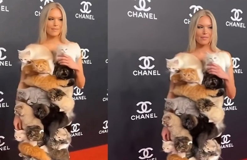الفستان جذب أنظار المحيطين، قبل أن ينتشر بصورة مكثفة عبر مختلف منصات التواصل، ليجتذب آلاف التعليقات حول العالم، وظن البعض أنه حقيقي، بينما في الواقع تم تزييف المقطع بالكامل، بواسطة تقنيات الذكاء الاصطناعي. وظهر الفستان في المقطع المفبرك وكأنه عبارة عن طبقات متعددة من رسومات القطط وحليّ صغيرة مستوحاة من شكلها، إلى جانب قطط حقيقية تموء وتتحرك بالفعل، وأكدت بعض الصفحات بالخطأ أن الهدف من الفستان لم يكن إزعاج الحيوانات، بل لفت الانتباه إلى قضية دعم الحيوانات الأليفة وتشجيع التبرعات لصالحها.