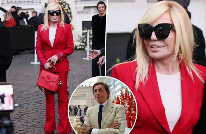 فيرساتشي تحضر حفل تأبين غارافاني ببدلة حمراء تكريماً لذكراه