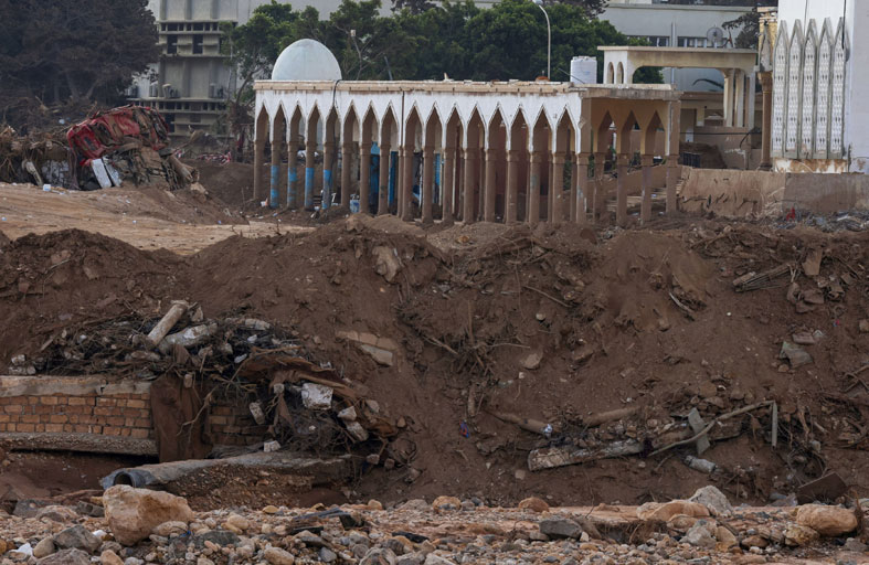 تسبّبت الفيضانات الناجمة عن انهيار سدين تحت ضغط الأمطار الغزيرة التي حملتها العاصفة دانيال في 10 أيلول-سبتمبر، في وفاة أكثر من 3300 شخص وفقا لآخر حصيلة رسمية موقتة وخلفت مشهدًا يذكّر بساحة حرب طاحنة.