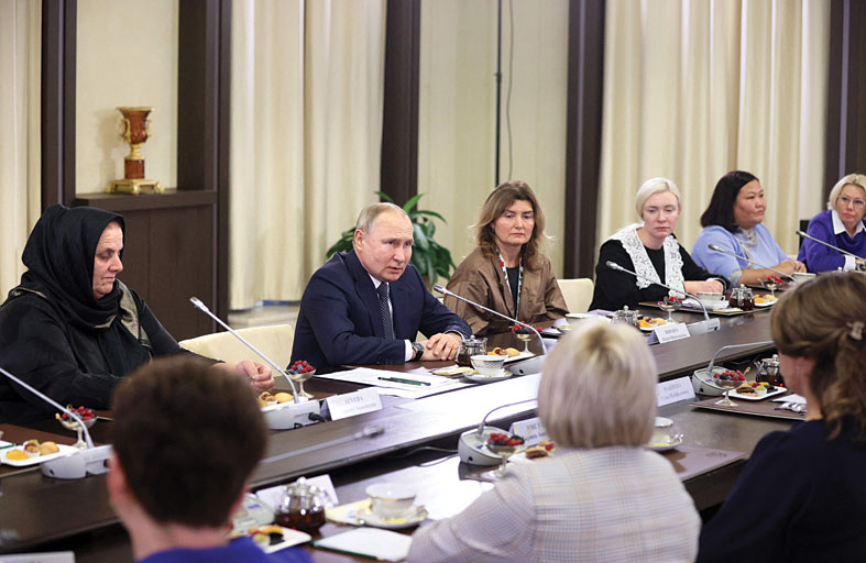 وفي لقاء مع أمهات الجنود الروس، الذين اشتركوا في القتال على الأراضي الأوكرانية، حيا الرئيس الروسي فلاديمير بوتين شجاعة هؤلاء الأبناء الأبطال في الدفاع عن الوطن والشعب الروسي سواء في دونباس شرق أوكرانيا أم في غيرها. كما أشاد بتضحياتهم، معرباً عن تضامنه مع العائلات التي خسرت أولادها. وقال أريد أن تعرفن أنني أنا شخصيا وكل قادة البلد نشاطركن هذا الألم. نعرف أن لا شيء يمكن أن يعوض عن خسارة ابن.