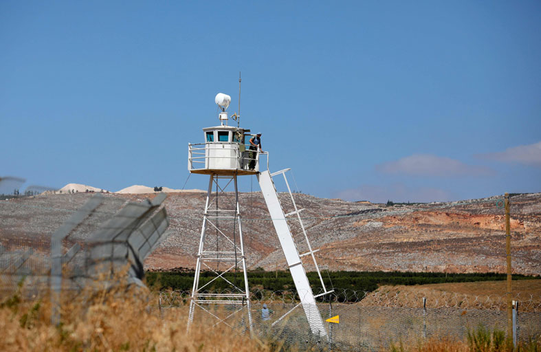 تحت أشعة الشمس الحارقة، تقوم قوات حفظ السلام التابعة للأمم المتحدة بدوريات في الجانب الشمالي من السياج الجديد الذي يبلغ ارتفاعه أمتارا عدة ويطل على منازل لبنانية في بلدة الوزاني.