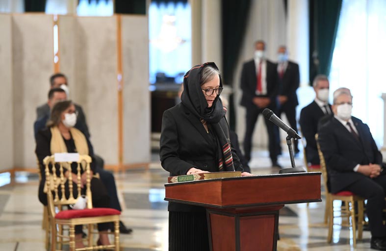 احتضن قصر قرطاج صباح أمس الاثنين موكب أداء اليمين الدستورية لرئيسة الحكومة نجلاء بودن وأعضاء حكومتها. وهذه الحكومة الجديدة التي تترأسها امرأة، للمرة الأولى منذ استقلال تونس، هي العاشرة في سلم ترتيب الحكومات التي تعاقبت على إدارة البلاد منذ سنة 2011، وثالث حكومة منذ الانتخابات الرّئاسيّة السابقة لأوانها والتشريعية سنة 2019، بعد استقالة حكومة إلياس الفخفاخ في يوليو 2020، وحكومة هشام المشيشي الذي اعفاه الرئيس قيس سعيد من منصبه في 25 يوليو 2021.