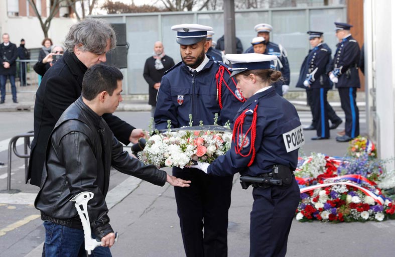 وقد أقيمت مراسم تكريميّة أمام المقرّ السابق للأسبوعيّة الساخرة شارلي إيبدو، في الدائرة 11 بباريس، بحضور رئيسة الجمعيّة الوطنيّة يائيل برون-بيفيه، ووزير الداخليّة جيرالد دارمانين ورئيسة بلديّة باريس آن هيدالغو.