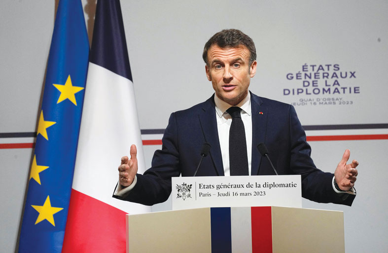 وقال ماكرون في خطاب نادر للدبلوماسيين في كاي دورسيه، حيث مقر وزارة الخارجية الفرنسية في باريس، أريد إتمام إعادة تسليح دبلوماسيتنا لتخدم السلام.