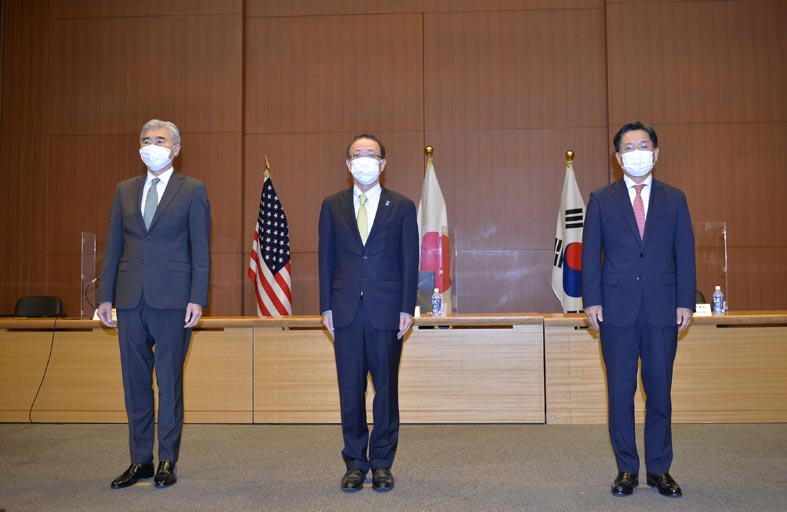 وأضاف لرويترز “الدول الثلاث اتفقت على أن نستمر في اتباع المسار الدبلوماسي ... لكن الهدف الرئيسي هو إخلاء شبه الجزيرة الكورية بالكامل من السلاح النووي».