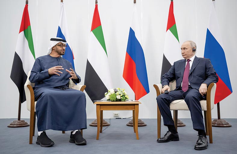 جاء ذلك خلال استقبال فخامة الرئيس فلاديمير بوتين رئيس جمهورية روسيا الاتحادية لصاحب السمو الشيخ محمد بن زايد آل نهيان رئيس الدولة "حفظه الله" امس في سانت بطرسبرغ في إطار زيارة العمل التي يقوم بها سموه إلى جمهورية روسيا الاتحادية. واستعرض سموه والرئيس الروسي، خلال اللقاء، مسار العلاقات الإماراتية - الروسية في ظل الشراكة الاستراتيجية بين البلدين، مؤكدين الحرص على المضي قدماً في تنمية هذه العلاقات.